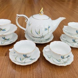 Bộ ấm chén Chóp lửa vàng kim vẽ hoa Sen xanh cao cấp