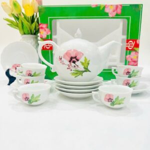 Ấm chén trắng, hoa mẫu đơn_ACHQ06