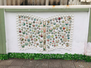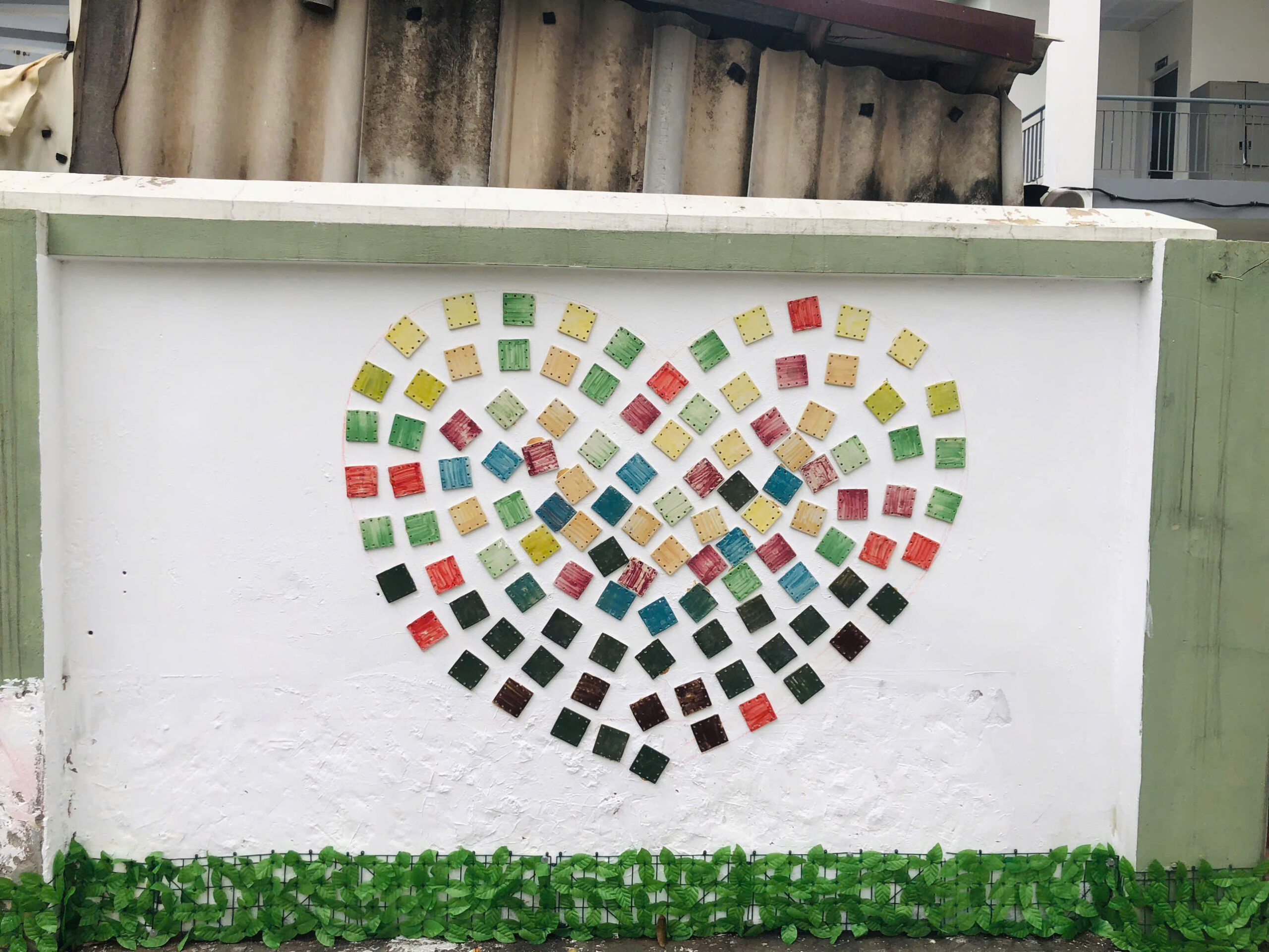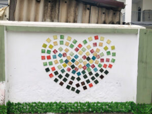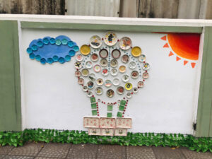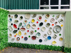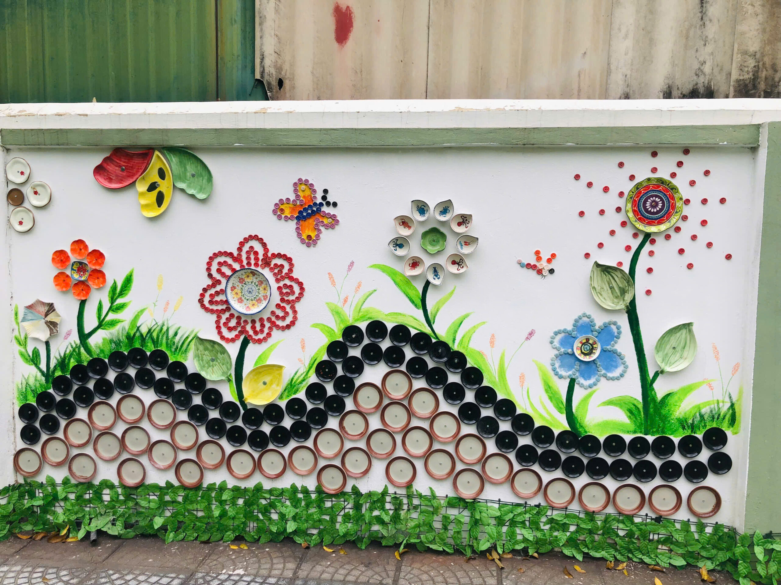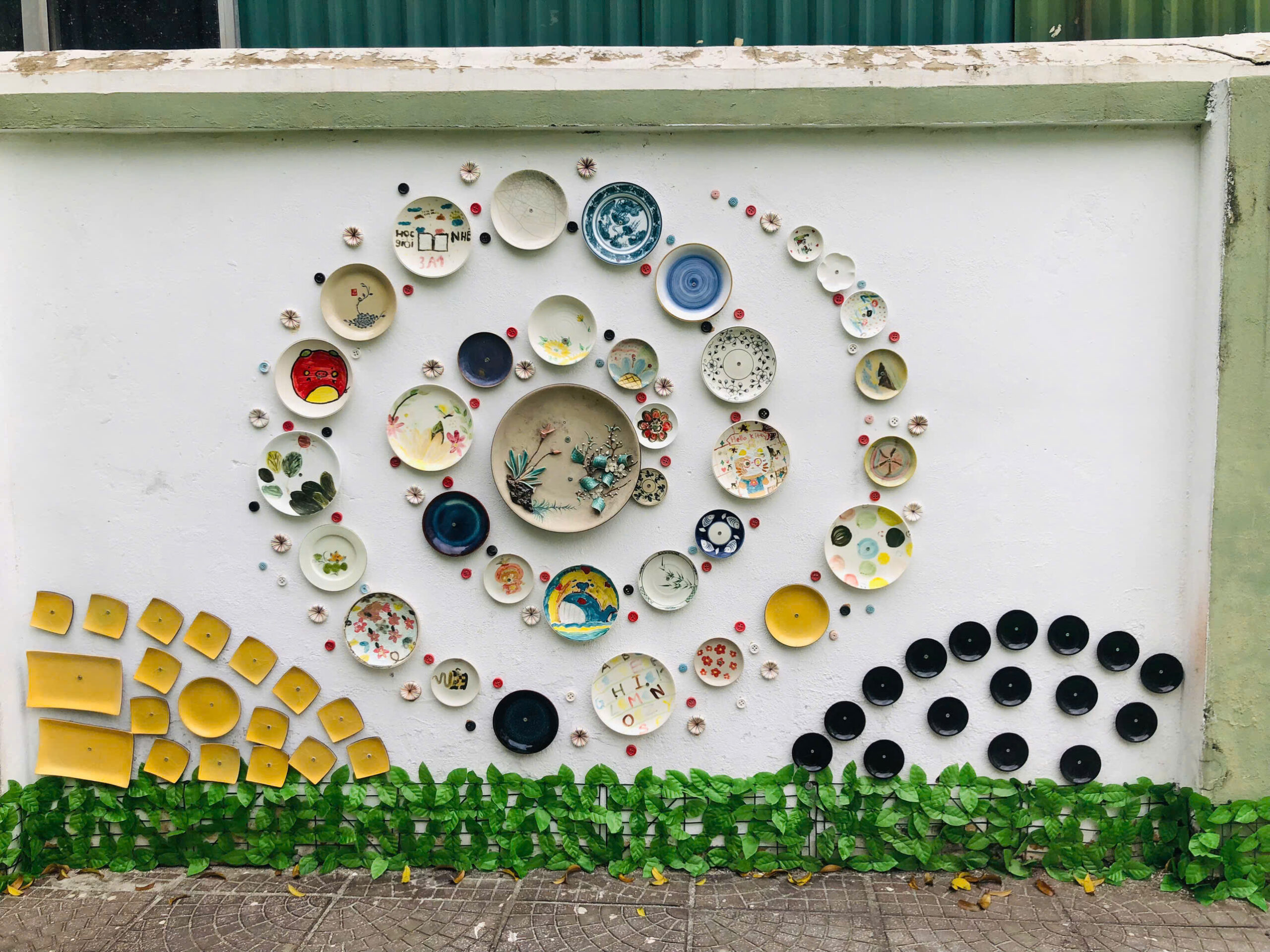 Thư viện xanh được ghép lên từ những sản phẩm, nguyên vật liệu làm gốm sứ, tận dụng những mảnh ghép, những sản phẩm dư ra trong quá trình sản xuất kết hợp với những ý tưởng sáng tạo đầy tính nghệ thuật và trong sáng, những đôi bàn tay nhỏ xinh khéo léo và hướng dẫn của những người con đất gốm đã mang đến những bức tranh và mảnh sân trường xanh, sạch, đẹp.