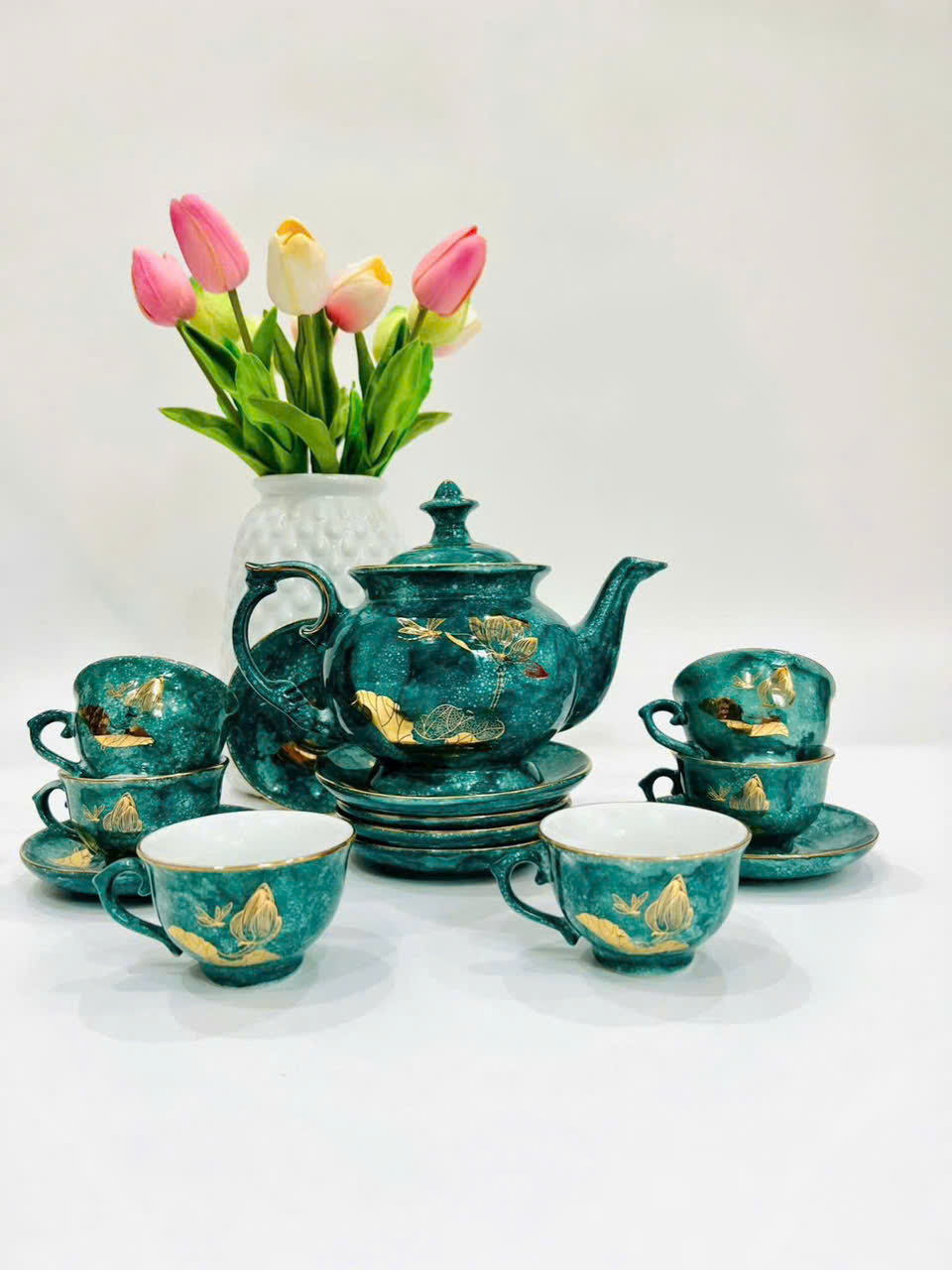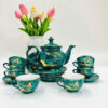 Bộ ấm chén men đá xanh, sen vẽ vàng_ACHQ01