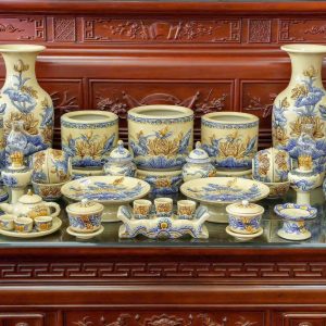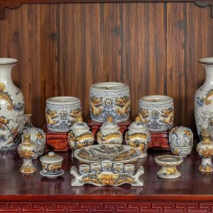 Bộ đồ thờ men Gio Rạn Gạo Nếp cho ban thờ 1m97 trở lên