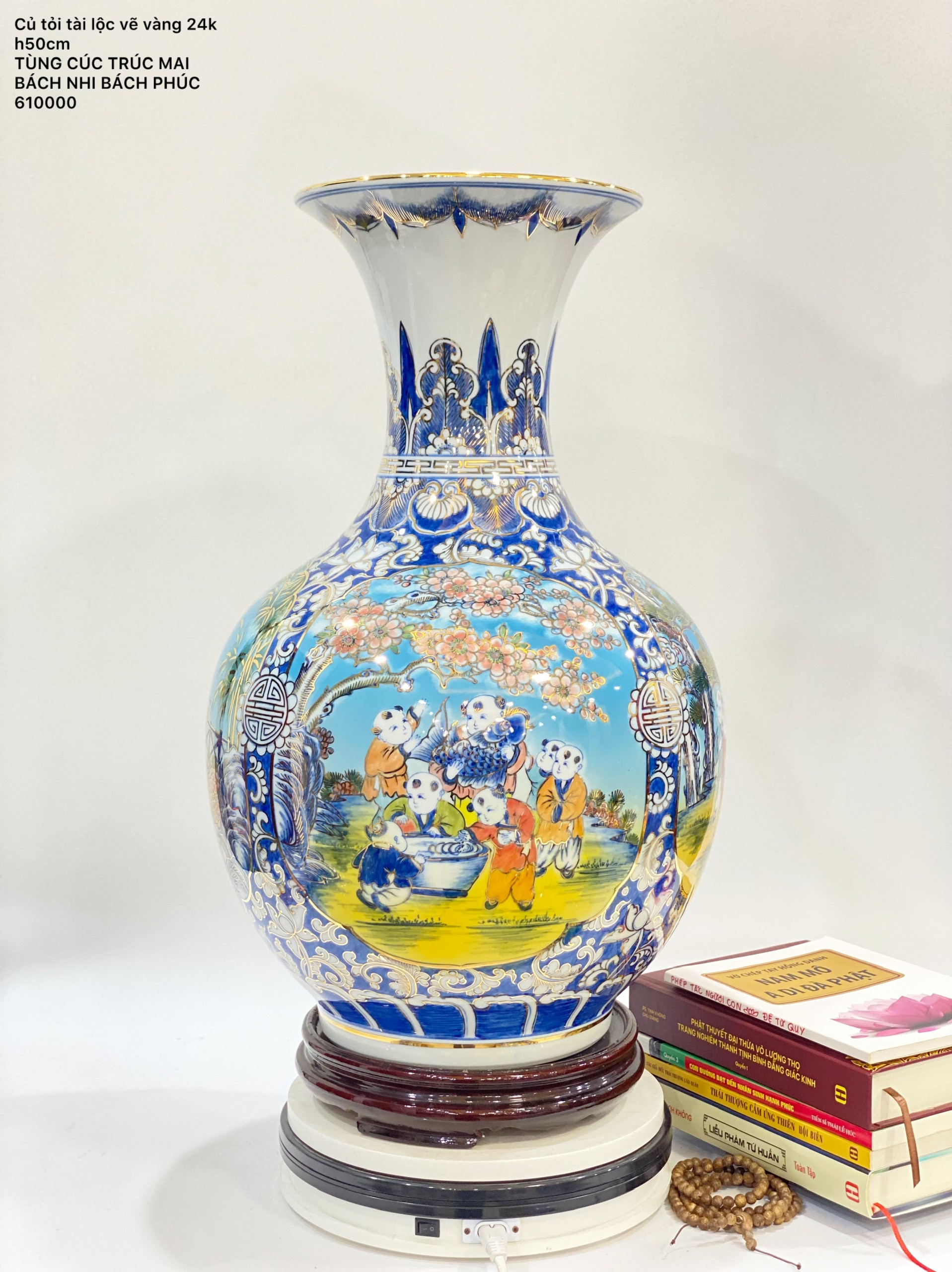 Lọ tỏi tài lộc sứ Bát Tràng,vẽ tay, vẽ vàng 24k
