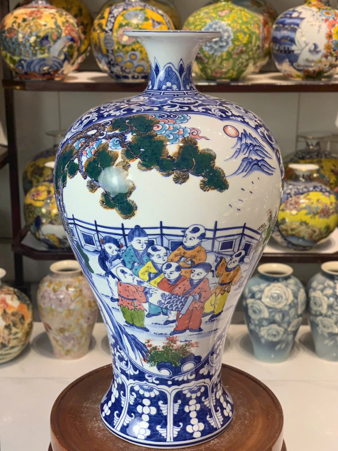 Mai bình vẽ tay cảnh Bách nhi bách phúc