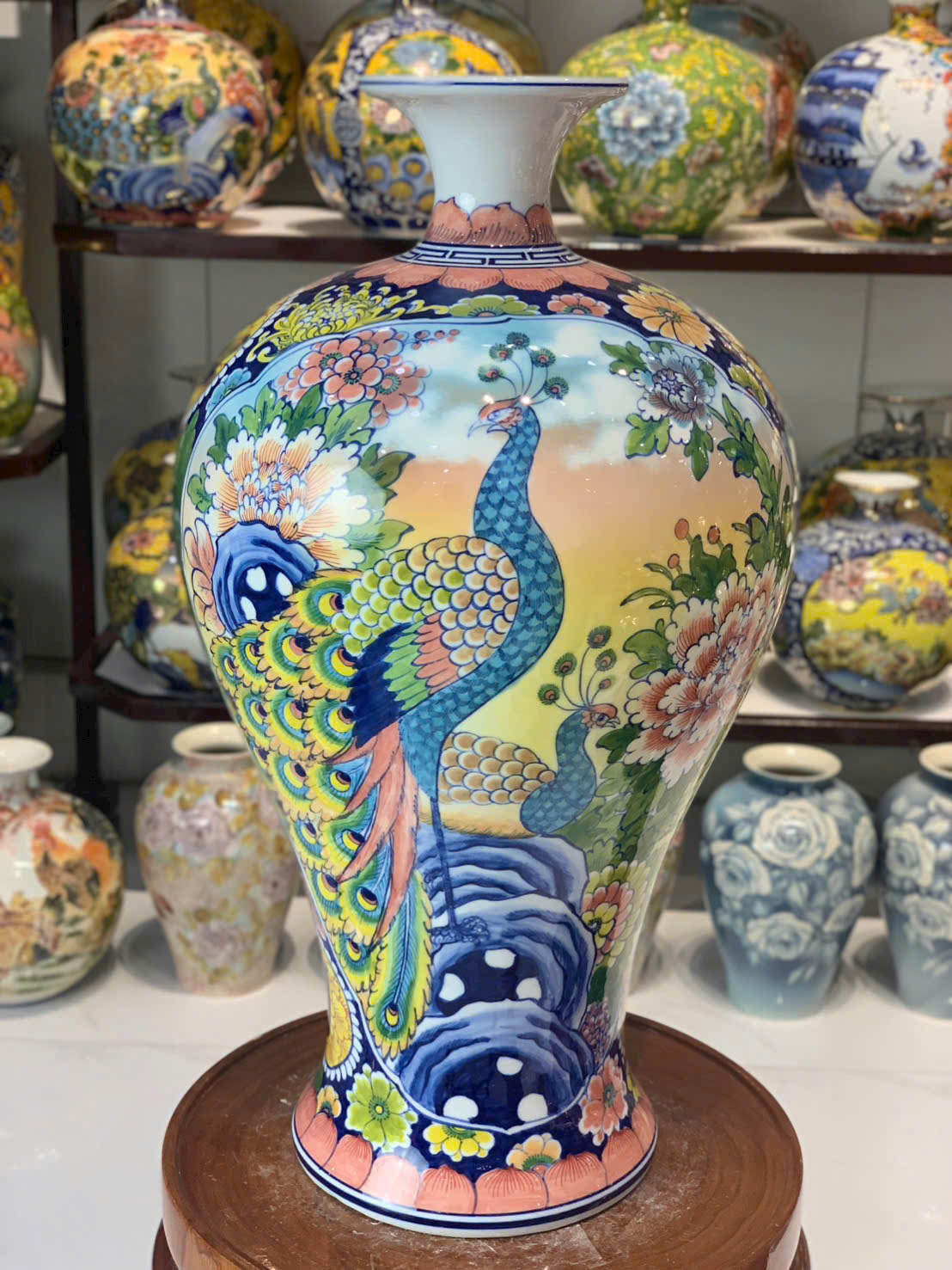 Mai bình H52cm vẽ tay cảnh công đào phú quý