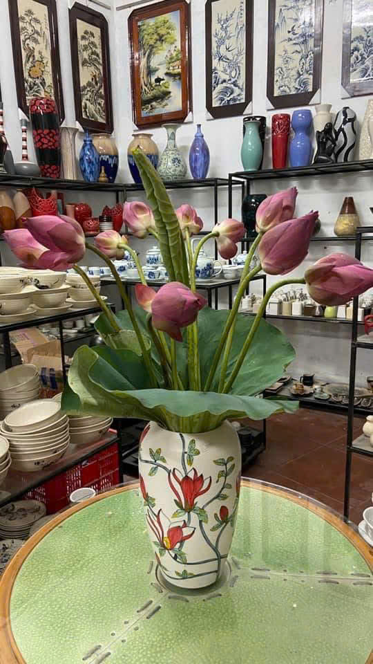 Vò men mát trắng vẽ tay hoa lựu đỏ NL01, H30xM13cm
