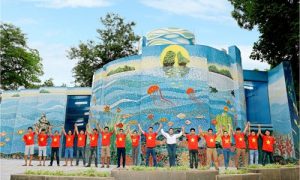 Nguyễn Thu Thủy cùng tác phẩm gắn gốm nghệ thuật “Nhà gương” trong Công viên ...